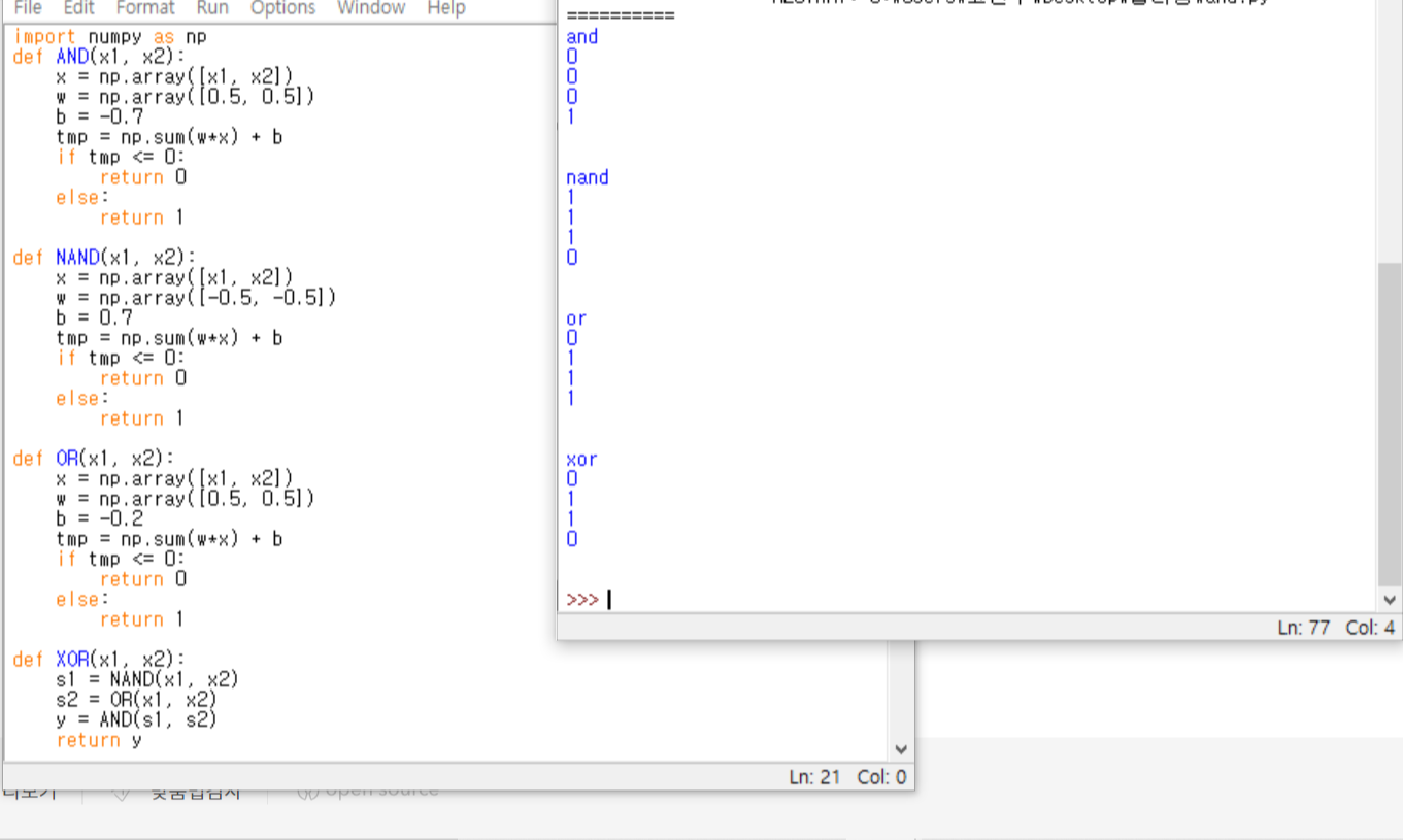 AND, NAND, OR, XOR 게이트를 퍼셉트론으로 구현해보자.