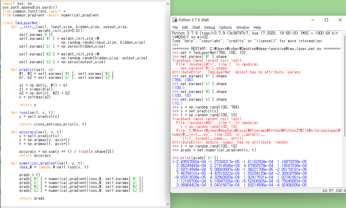 다만 grads를 계산할 때 시간이 굉장히 오래걸린다.. W, b가 형상이 크기 때문에 어쩔 수 없는듯.
