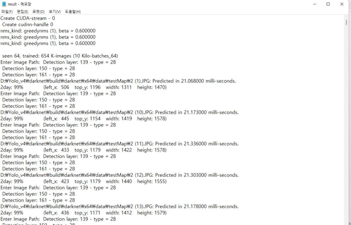 그래서 우선 내 result.txt에 있는 detection layer : 139- 뭐시기 저시기 반복되는 문장이 있는데