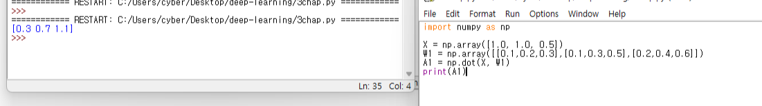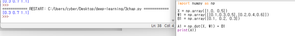 다시 말해 A1 = X*W1 + B 을 구현한 것.