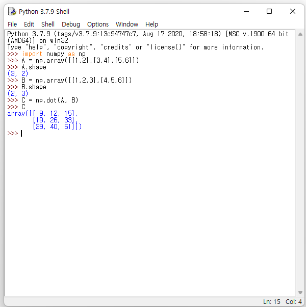 다시말해 A의 열의 개수와 B의 행의 개수가 같아야 한다.